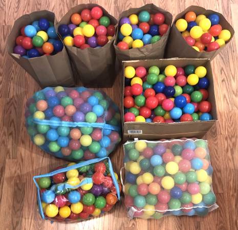 Kids/ toddler ball pit balls. Over 1,200 balls, (9 bags) that is a lot of balls! all for $75.00