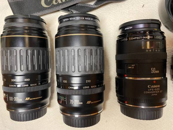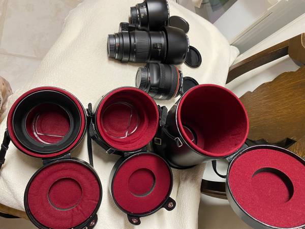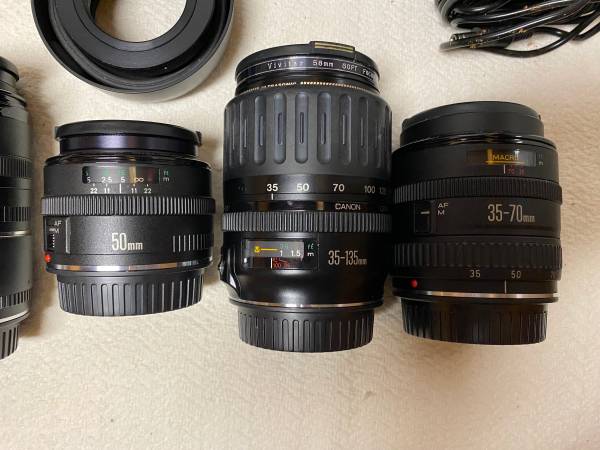 2 Canon cameras all the assorted lens, and accessories . Too many to list, please refer to the pictures for all. $1,200.00 for all. Selling all together. Call