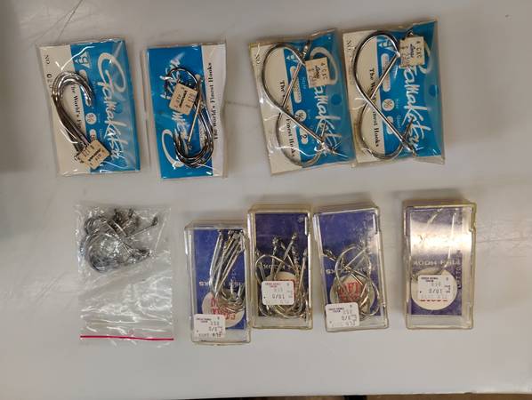 one box #14 hooks 100 count, six packages of #10 hooks 3 packages of #9 hooks $ 50.00 call not text