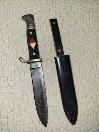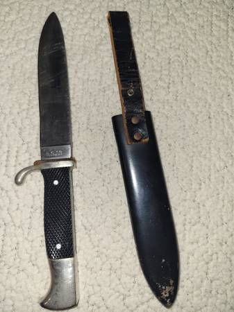 Post WWII German Youth Knife, equivalent to a Boy Scout Knife. With metal sheath. No rust. Asking $125. Text 907.5three9.six4nine4.
