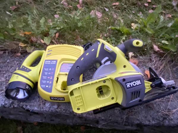Power tools Ryobi Saw, battery charger, and flash light. All 3 for $20.00 Call