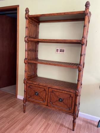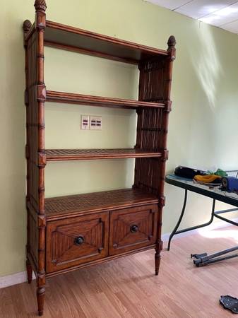 Call/text Tommy Bahama Home tropical furniture - excellent - 72"H x 39"W x 17"D - large solid wood open back book case - four shelves and two drawer cabinets for vertical files