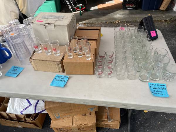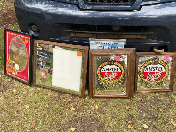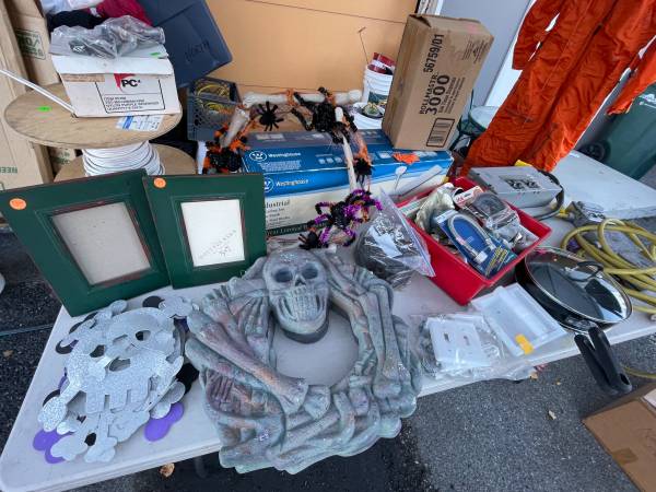 Lots of miscellaneous items, CD's, LP albums, many New in Box items, Kenwood and Sony speakers, electrical box, quad box extension cords, Halloween Decor, Christmas decorations, New Years Eve kits, vintage Barbies, logo t shirts (new), boys and mens jeans and tops, Mens flight suit, boys Columbia jackets, a few women's jeans, Alaska patches (new), vintage beer and liquor mirrors, logo glassware and shot glasses, Legos, stacking office trays, Bags of boys toy collections, Hot wheels track set, Industrial ceiling fan (new), time cards and rack, restaurant check racks, misc. kitchen items, and lot’s of other random things … come check it out! 11am-3pm!