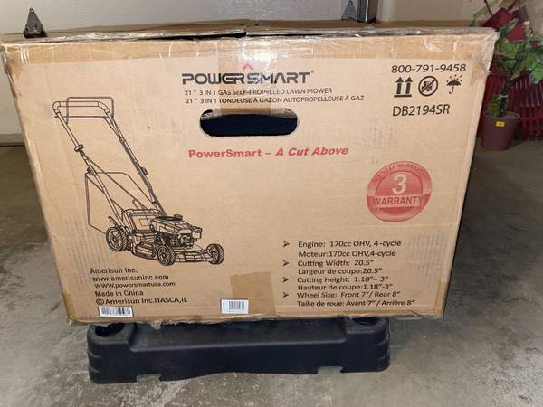PowerSmart lawnmower color red nib (new in box) $230 obo Self propelled. Engine 170cc