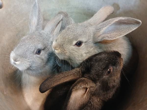 Mixed breed bunny litter born July 22, 2025. 9-10.5lb when full grown.