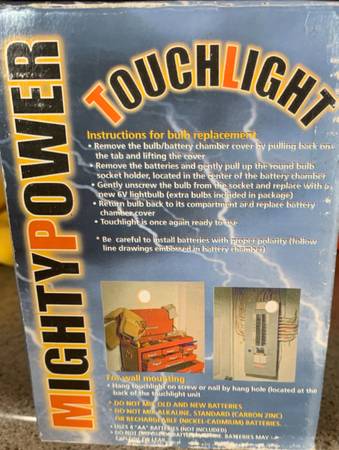 2 push lights, I used these things everywhere, tent camping, garage, closets, back deck, outhouse at the cabin, wherever electricity was not available. Cool lights they used to sell back in the day, new in the box. If interested please call or text local area code 7four8two7three2. Thanks