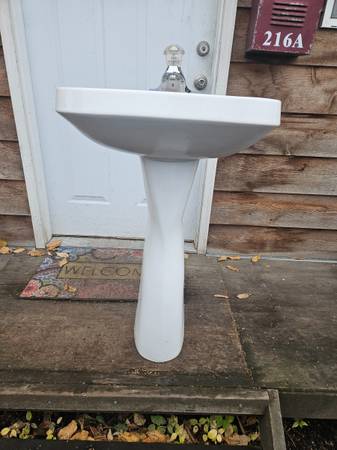 Pedestal sink w/faucet, very good condition, white. No chips, no scratches.
