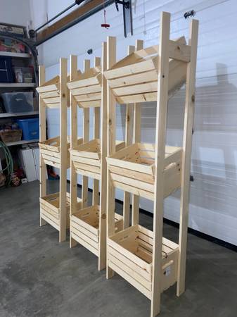 New Planters and/or Vegetable bins and/or craft storage, display - $110 each FIRM - cash only Currently have 5 available 68” tall 19.5” wide 13.5” depth New Wood bins In Eagle River on Raven drive...