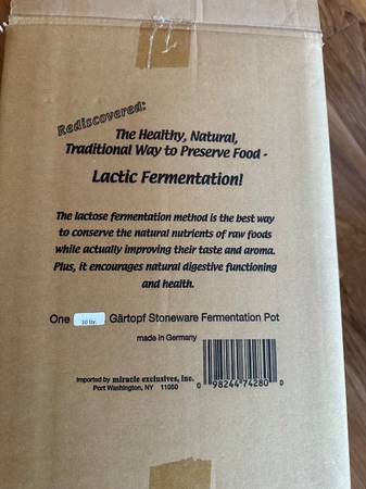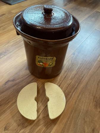 Ten liter German made, Gartopf Fermentation Crock. Makes wonderful Kraut! Excellent condition. Cash. Palmer pick up.