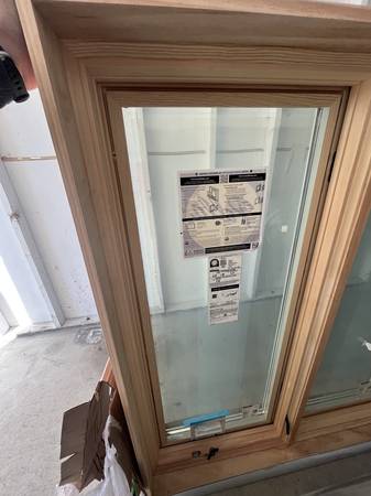 Brand new windows. Two. Premium energy efficient Pella metal clad/wood casement window. Metal on the outside. Wood on the inside. Paintable and stainable. Right hand opener.