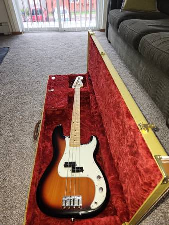 ---Fender Player Series Precision bass guitar. Maple Neck Alder body. 3 Color Sunburst.