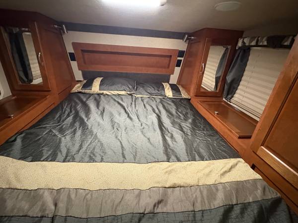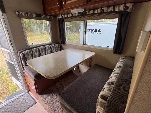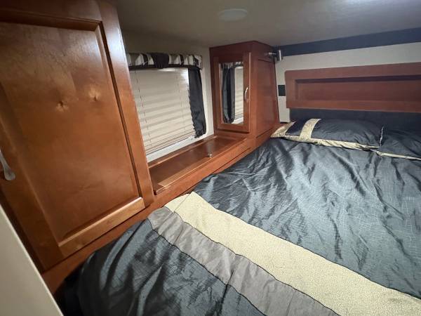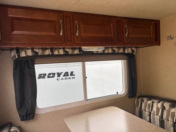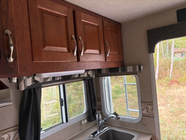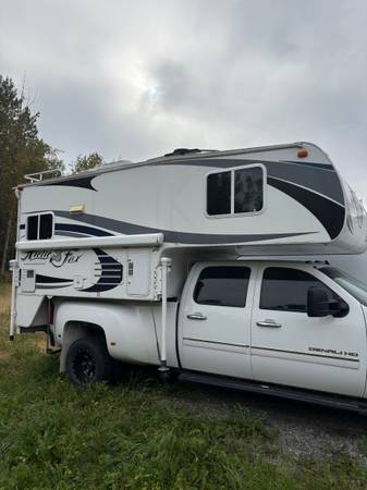 Cab over camper fits an 8 foot bed, wet bath 200 Watt solar panel two Group 31 glass Matt batteries added canopy on the passenger side tiedowns included some utensils, plates, coffee, pot, etc.