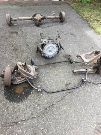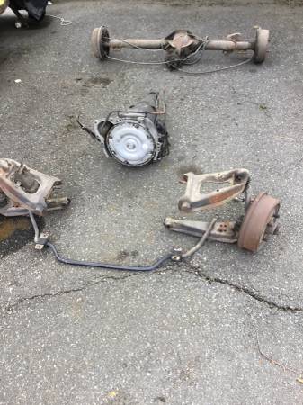 If you are maintaining or repairing a (60's- 70's) 144, 170 or 200 6 cyl Ford, I have front spindals, and almost a complete steering assembly as well as the rear axle, radiator and engine gauge feed that just came off my 64 Falcon. All are in good condition and were functioning properly when they were removed to accommodate a V-8 swap. Most of these parts are getting increasingly difficult to find. The picture of the rim is still up for reference only, they have been sold. I have two sway bars with connectors And a few other small 6cyl parts. All parts are used but still in good condition.