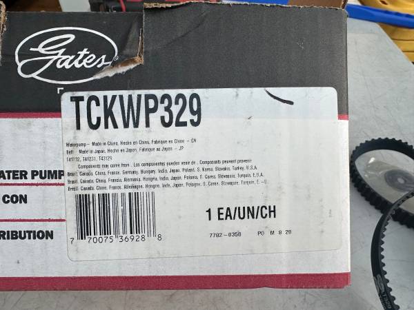 Water pump and timing belt for Honda 3.5 L. Gates PowerGrip TCKWP329...