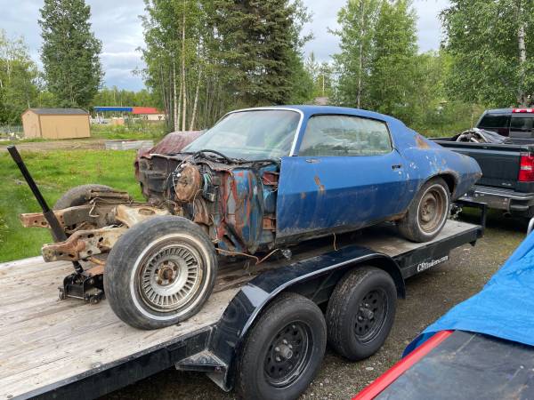 1972 Camaro TRUE RS/SS car. Rusty, needs plenty of sheet metal work. Have rear glass not shown in pictures. New rear spoiler. No title. $1000 firm, no trades.