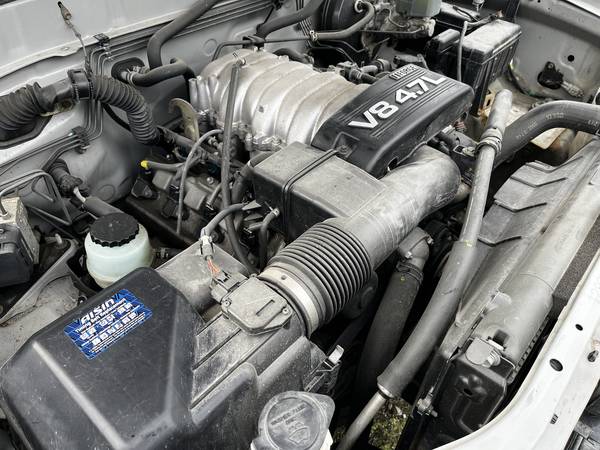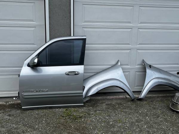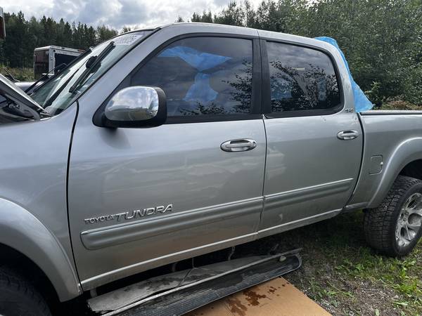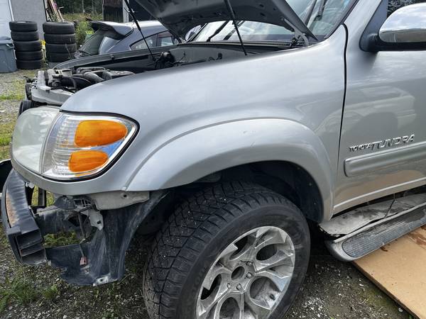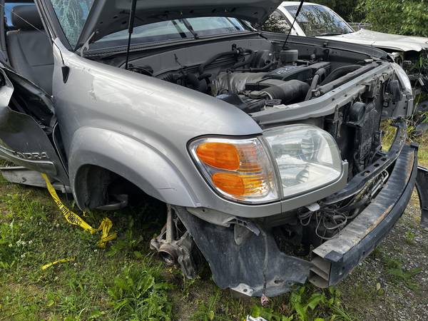 Parting out a 2004 Toyota Tundra Limited Double Cab truck with low miles (165K). Parts available include Toyota 4.7 V8 engine (timing belt was just done at 138K miles), automatic transmission (Toyota A340E), driver's door, driver's-side rear door, leather seats, lots of other interior parts, and more. The bed is functional and available, but there is a dent in the passenger side of the bed. Hood, front and rear bumpers, front fenders, tailgate, wheels, tires, and headlights are gone already. Many parts will also fit Tundras from 2000, 2001, 2002, 2003, 2005, and 2006, as well as the early generation Sequoia. The wheels also fit Tacoma and 4Runner. Text or call show contact info