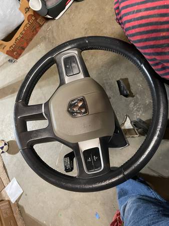 selling complete steering wheel with airbag from 2012 ram will fit for another year $200 OBO call or text at 907 two32 9849