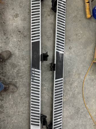 Ford crew cab running boards. Came off a 2016 and definitely fits 2011-2016 Ford crew cabs but likely fits 1998-2016 models. In good shape, only light surface rust on bottom. Comes with all mounting...