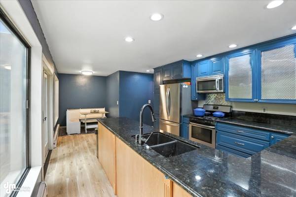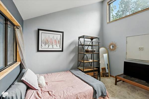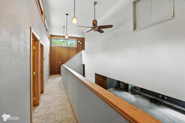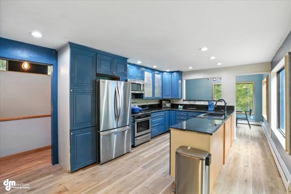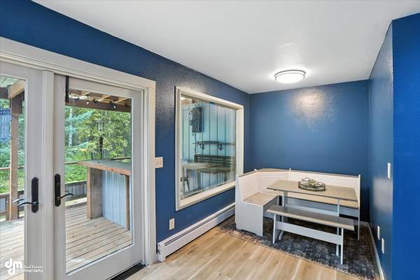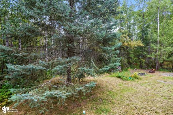 The exterior is surrounded by lush natural landscape and has access to Eklutna Land; there's a trail just off the backyard. Some of the 2023 updates include roof, exterior paint, on-demand water heater, light fixtures (LED), windows, interior doors, carpet, and LVP flooring, and bathrooms have been updated. Has a covered deck. Approximately a 30-minute drive to Downtown Anchorage.