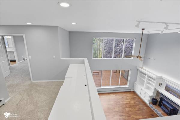 Vaulted ceilings create an open, airy feel, complemented by new carpet upstairs and a newer boiler for peace of mind.