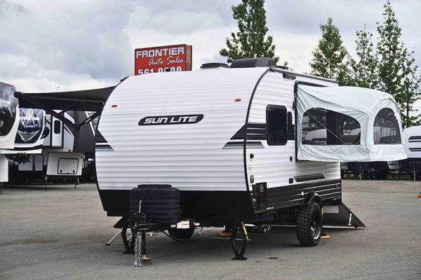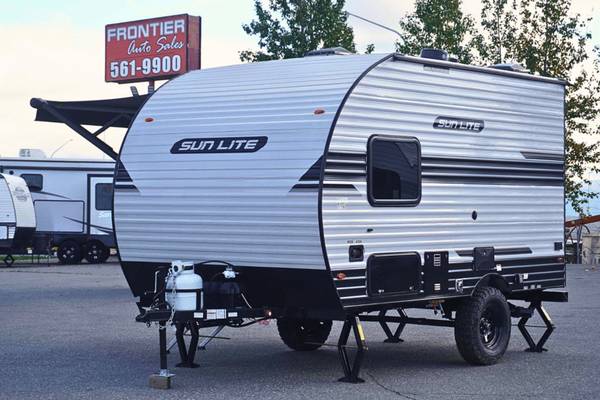 Each Sun Lite LTD travel trailer by Sunset Park RV is made with flexibility in mind. These lightweight models weigh under 3,000 lbs. for easy towing, and they offer best-in class interior storage for all your belongings. There are wood framed sidewalls, .024" aluminum siding, plus 3/8" fully walkable roof decking for added durability. The spring-leaf Dexter axles and radial tires will make towing easier than ever, and the front and rear stabilizer jacks will provide a secure foundation when you're set up at the campground. A 100W solar kit with a controller is also included, along with a 20 lb. LP tank, and a power awning for protection against the elements. Inside, you'll find a power vent in the bathroom, LED lights, USB ports, and cable/satellite hookups. And the LTD Appliance Package also comes standard with a 12V refrigerator, a two burner stove, a DSI gas water heater, plus a 5k BTU A/C and a 16k BTU furnace!