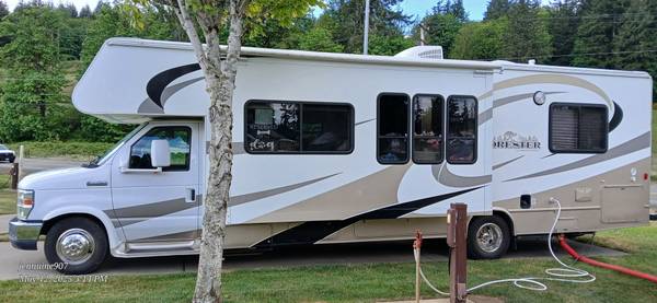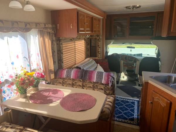Ford E-450 Chassis with a 6.8L Triton V-10 Engine with plenty of power and torque, tranny works very well.