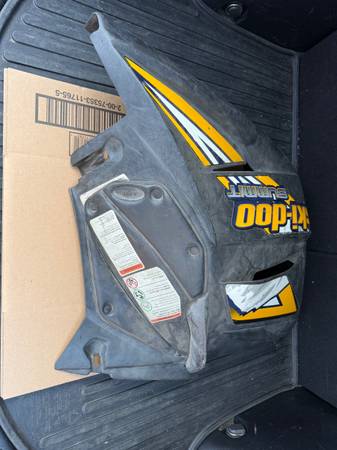 2005 to 2007 Skidoo Summit 550 fan cooled clutch side panel. Fits all 1st gen REV chassis, has exit for heat from fan cooled 550. MXZ, Summit, GTX, GSX Skidoo 380 cc or 550 cc fan cooled Hood sold