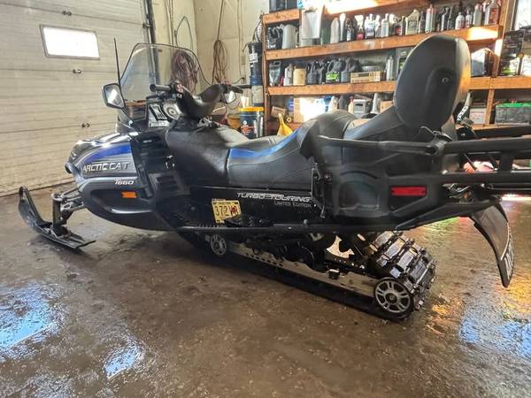 2006 Arctic Cat T660 Turbo Touring Machine for Sale. This 110hp, bulletproof Suzuki motor features EFI, a 133” track, and a 47” wide stance. Additional features include a 2-up seat, Cat Com readiness, and a rear rack. Ideal for touring or ice fishing.