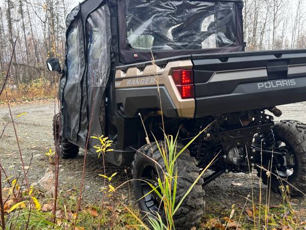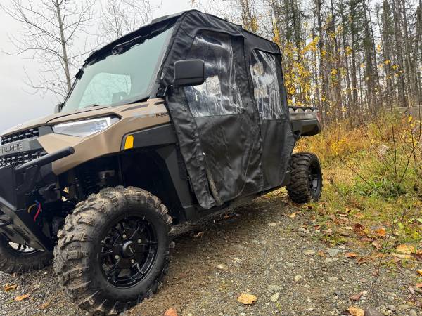 2023 Polaris Ranger crew XP 1000 Dual Overhead Cam, Bronson rock smoke color, fully Enclosed, front glass windshield with electric wiper, 4500 LBS remote winch, front