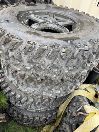 Rzr Polaris pro S R R15 rims mounted on Maxxis 32x10R15 tires. Used 400 miles. 5 lug