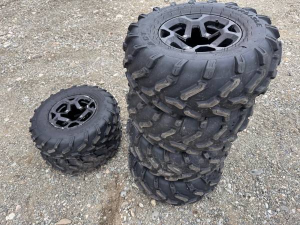Full set of can am outlander 2022 650 rims and tires 26” tires R12 rims. Rims tires fit regular outlander 4x4 as well. 4x137 bolt pattern