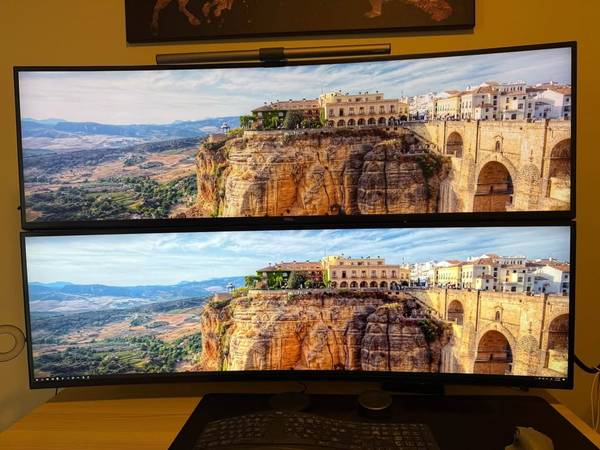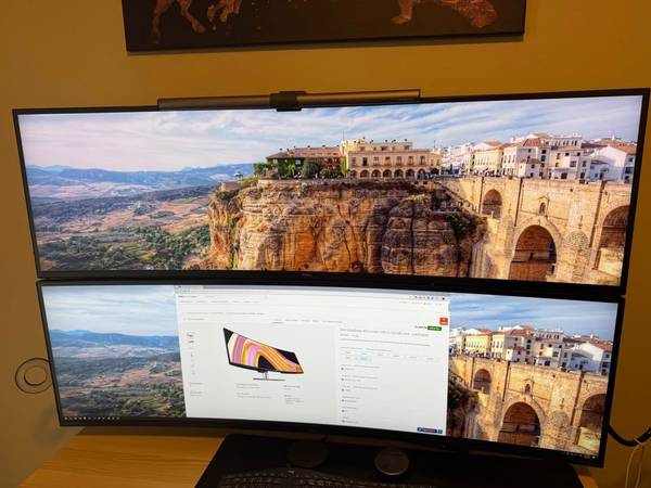 Two Dell 49" Ultrawide monitors. Comes with Halo light bar and Atdec monitor mount. Monitors are originally $1500 each. Excellent condition.