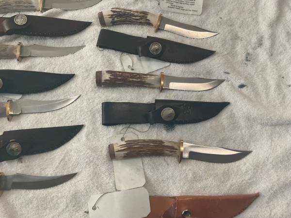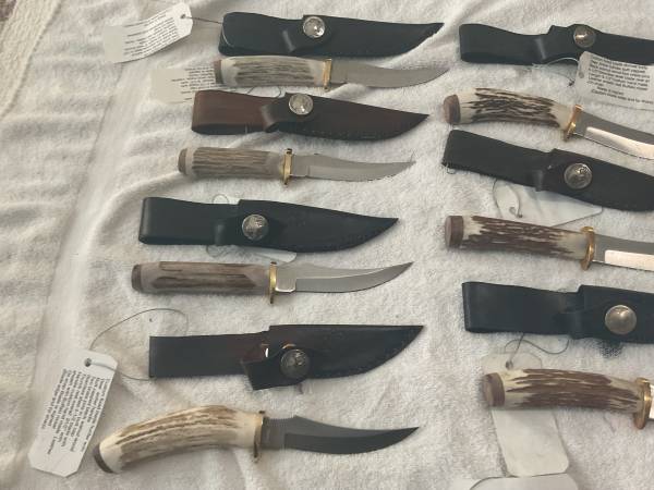 ) no calls after 6:00 pm or before 9:00 am. Cash only and must have correct change. There are 3 size blades. ( All knives are signed) blades are sharp and polished blades are stainless steel. These make great gifts or collectibles there are only a few left