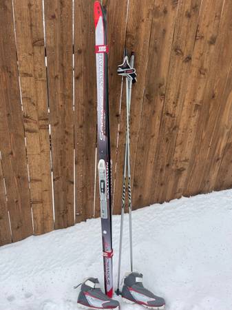 Skis, boots US W sz.8.5, poles in new like condition. 250-7010