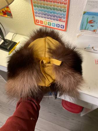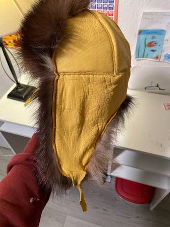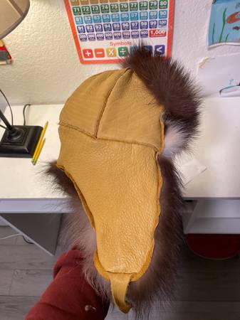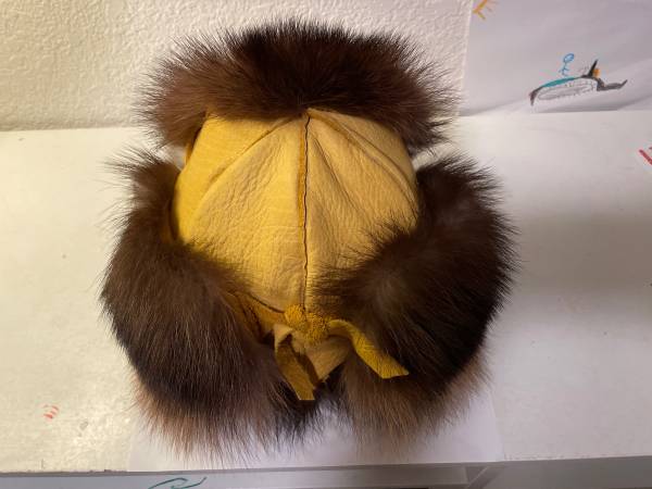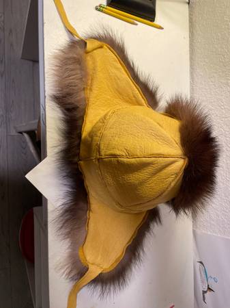 Wolverine Fur with Bison Leather trapper hat. Welted seams on leather to keep wind out and high quality leather thread used on stitching to make a very durable hat. Men’s size large/mediumlarge ....