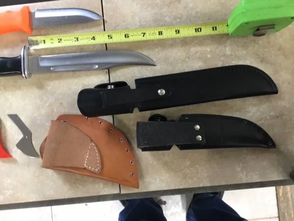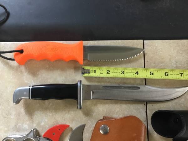 Cutco is new and manufacture will sharpen for life free.Buck is used in supper condition and super sharp.Wyoming skinner is used but like new with extra blade. Both knife sheaths are new. Cuto cost...