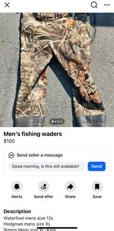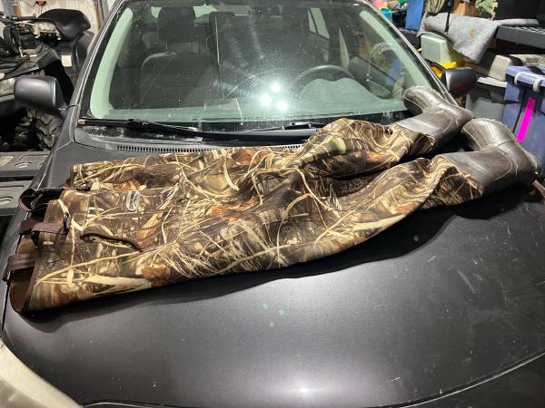 Mens size 8. 1000g Insulation. Comes with neoprene shell holder and bird strap. Located down KGB in Wasilla. Cash only.