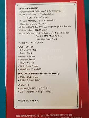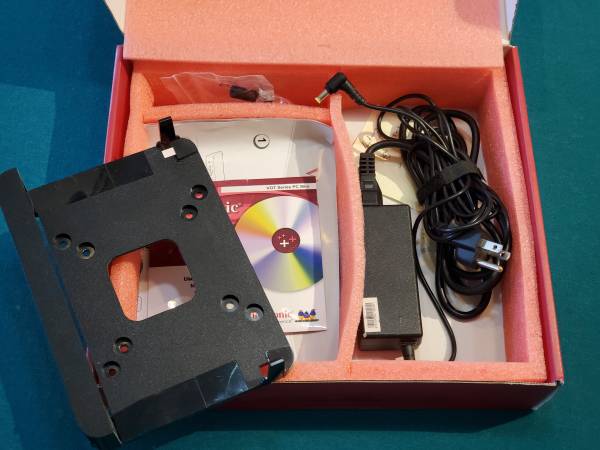 This tiny WiFi computer is great for connecting to a TV or monitor in the kitchen living room. We used it for web browsing and storage of recipes, pictures and videos. Comes with a tabletop stand and bracket for mounting on the back of a TV or monitor.