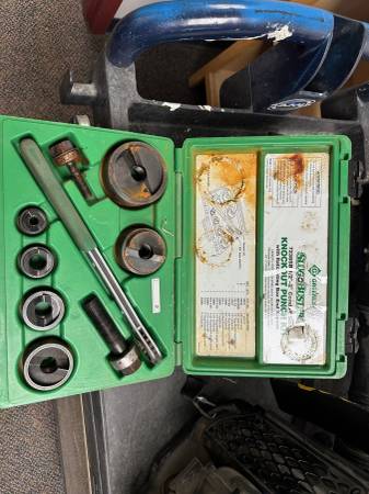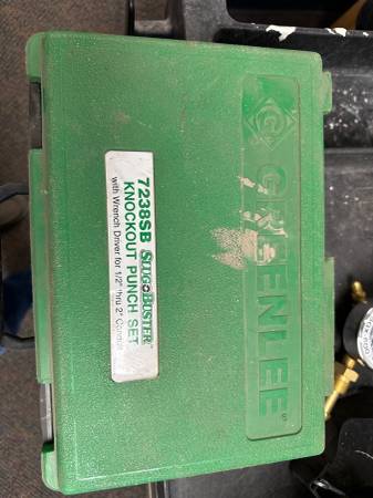 Greenlee 7238SB Slug-Buster Knockout Kit with Ratchet Wrench 1/2" thru 2" for sale. $175. Available Monday through Friday from 8am to 3pm. If interested text 907-250-zero zero 35.