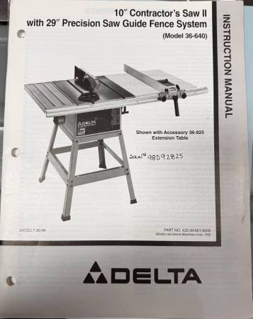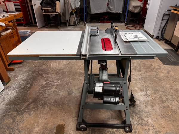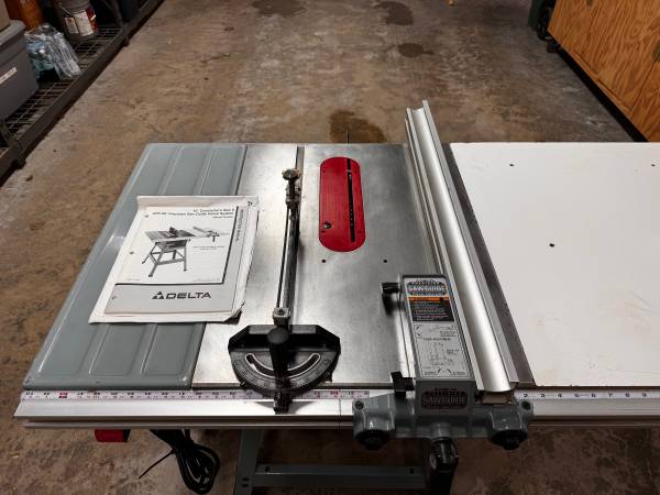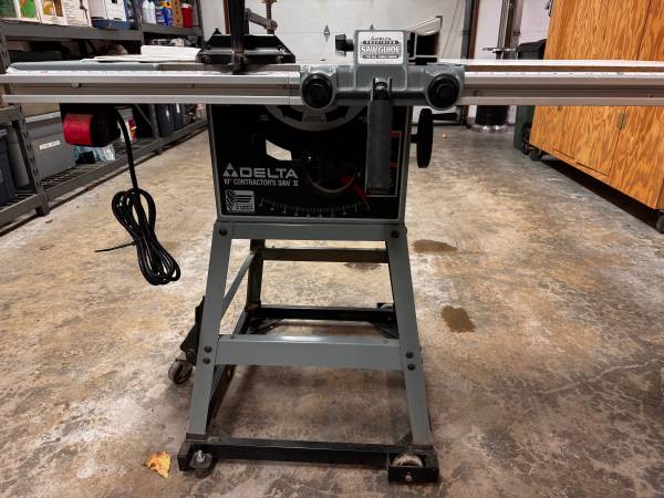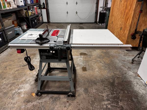 Delta Table Saw in excellent condition. Has rip and miter fences. On roll around casters. Cleaning out my garage and I’m not using it anymore. New at Lowe’s $770.00. Or Best Offer