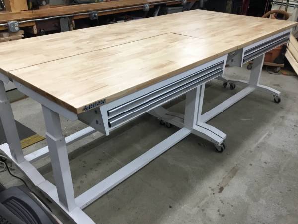 Excellent condition and are extremely versatile.Each have two HD draws.And heights are adjustable.HD casters.Great work tables.Hate to sell but moving and scaling down.Will sell in pairs of two for 500$ or four four the one thousand.Calls Only 863-1155
