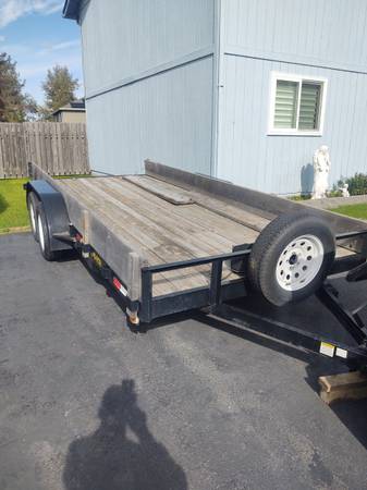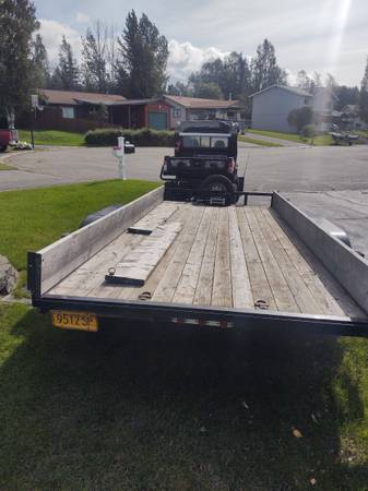 83 inch wide X 16 FT Deck car hauler trailer 7000lb total dual axle with electric brakes, 10,000 LB super winch with 3/8 cable x 47ft long and remote controller. 4 D-ring hold downs, 2-inch wide rachet straps 2 spare tires and 2 batteries. $5,500.00 OR $4,800.00 WITH WINCH AND 2 D-rings REMOVED AND NO BATTERIES. IN PERSON, CASH SALE ONLY, NO TRADES. 907 four four one 2 eight 2 three. Call between 9:00 AM -8:30 PM if no answer leave message. No Text Messages