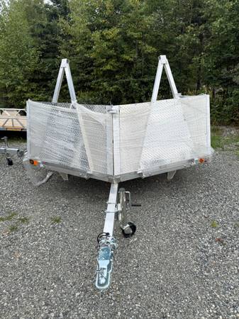 Brand new 12’ V nose 2026 Ridgeline Snowmachine UTV ATV Trailers 3500# axle Upgraded 13” tires and rims Rear Ramp Drive off front $5000 includes salt shields $150 spare tire $50 set of 4 side rail...