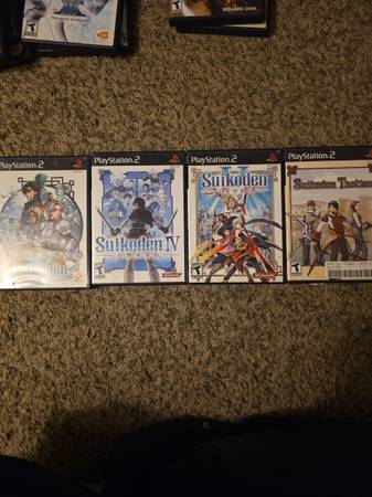 Suikoden three,four, and five as well as tactics for the PlayStation 2. Tactics is missing the booklet.
