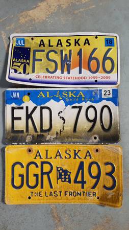 I want your unwanted license plates, Alaska plates and other states. U are required to have a rear plate ONLY now in Alaska, I'll take the front one. In good condition I will pay $1 each plate for newer ones Pic #1, in poor condition I will pay 50 cents each. I DON'T want anything torn that can cut someone. U have a yard full of cars I will pull them. Also interested in older plates any state send pics I will pay more for those. 90seven 7 one 597two 8. Thanks