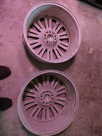 2 20" wheels. Fit a 2011 Chrysler 300, maybe more. 5x115 bolt pattern, 71.6mm center