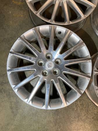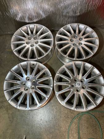 18 inch rims, 7J wide, 65.1mm center hole, 5 x 110mm bolt pattern, ET41 offset. Includes TPMS Off a 2007 Saturn Aura. Also fits Chevy Malibu...same specs, and Chevy HHR $240 call