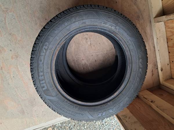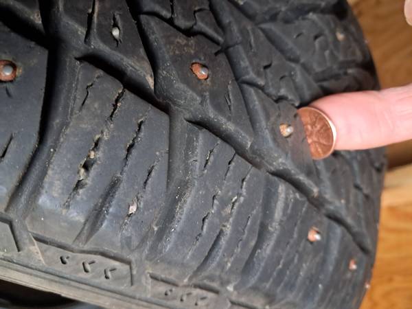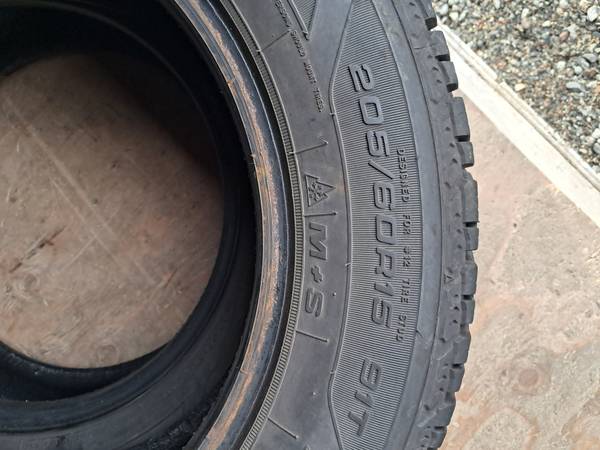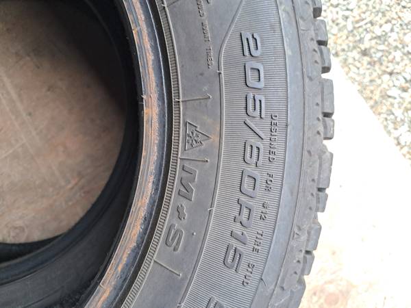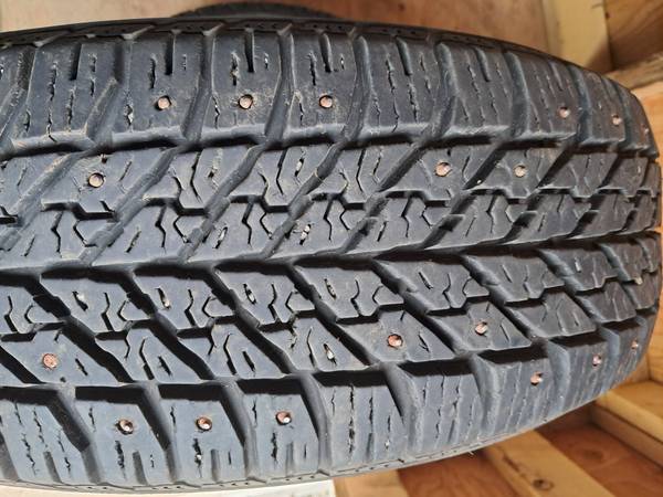 2 tires older as is snow and ice Studded Goodyear 205/60/15 estimated 70% tread life remaining good studs No repairs $120 for the pair