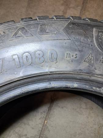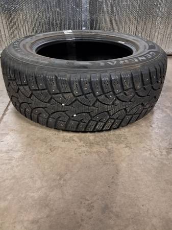 Single tire.......snow and ice Studded winter 235/65/17 older as is estimated 50% tread life remaining fairly good studs No repairs $70