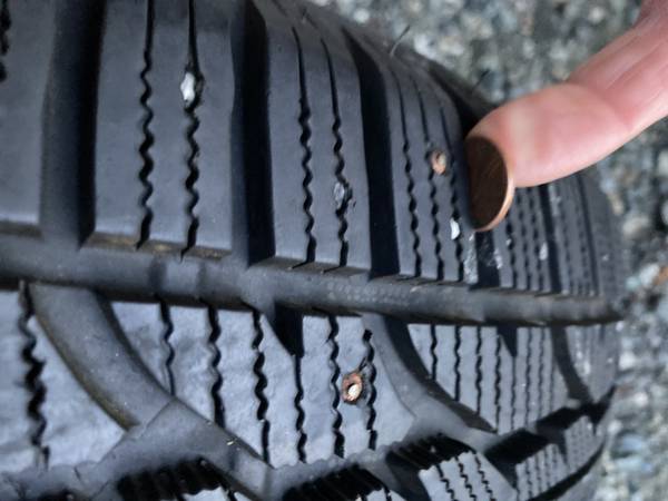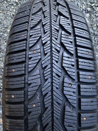 Single spare studded tire snow and ice winter 225/60/18 Firestone Winterforce(2) with estimated 80/90% tread life remaining 1 professional repair $80